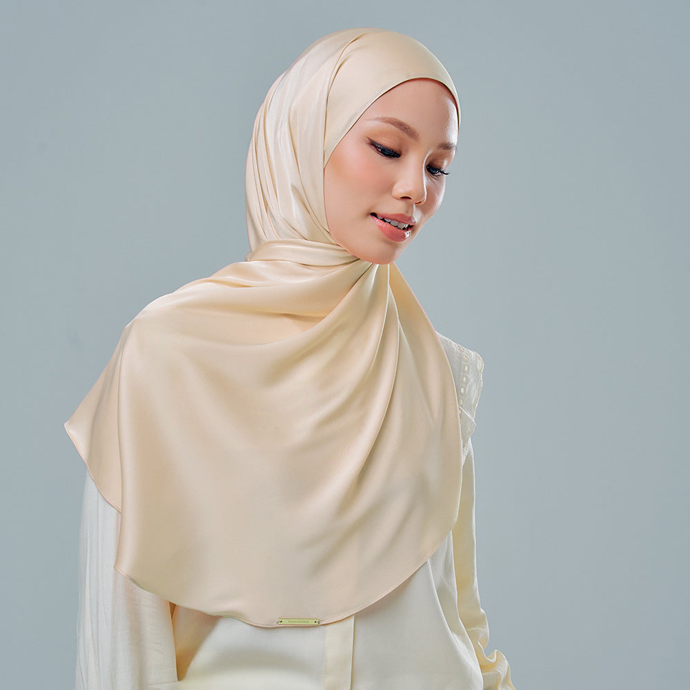 Our Inaya shawl comes in bullet cutting, with one curved end and one straight end - for maximum style options and full coverage to matter what.