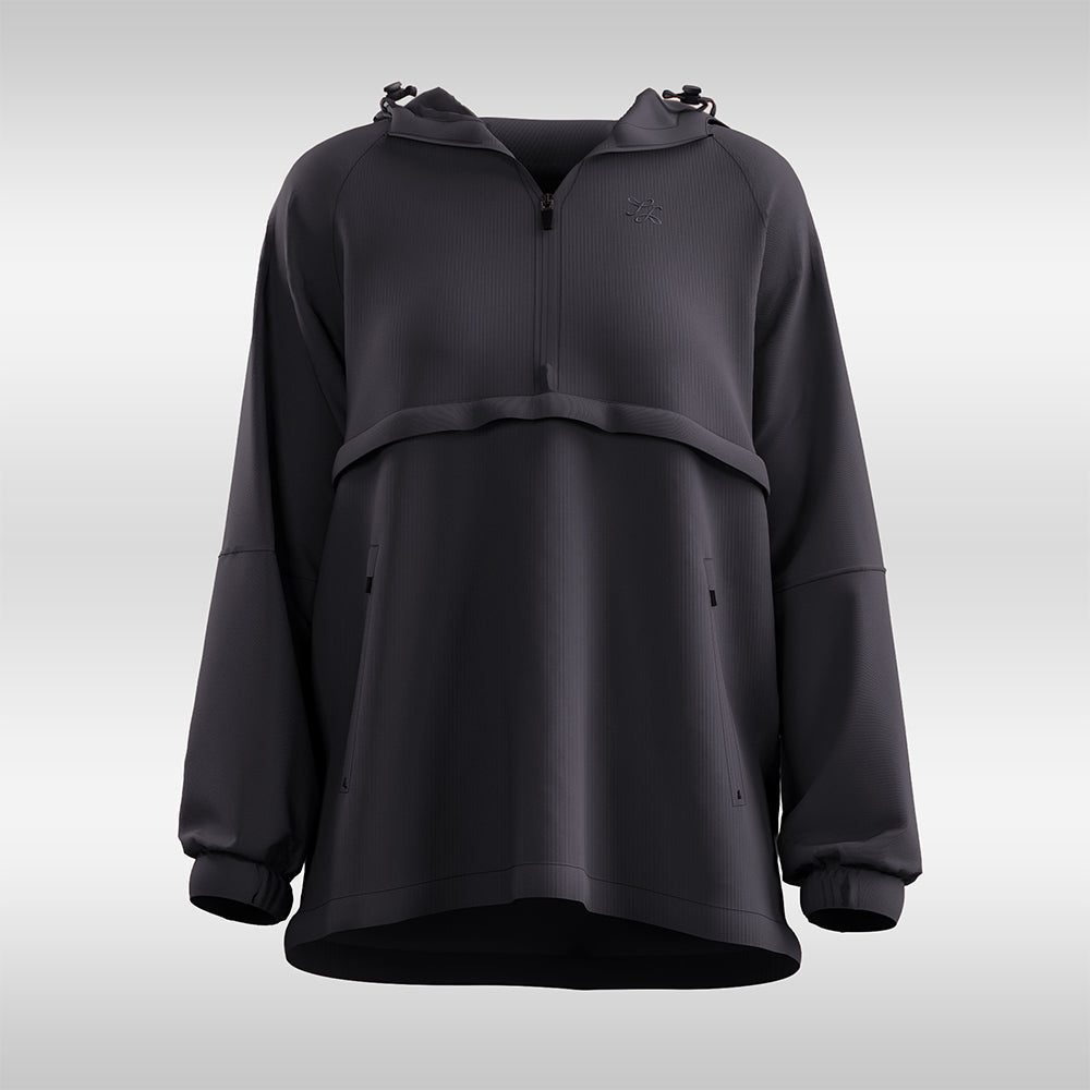 A versatile half zipped Parka that comes with stand collar, zipped pockets and attached mesh panel for better back ventilation and perfected with raglan sleeves for easier movement. This improved version has a roomier hoodie with adjustable drawstrings, and half elastic cuffed sleeves for a minimalist look.