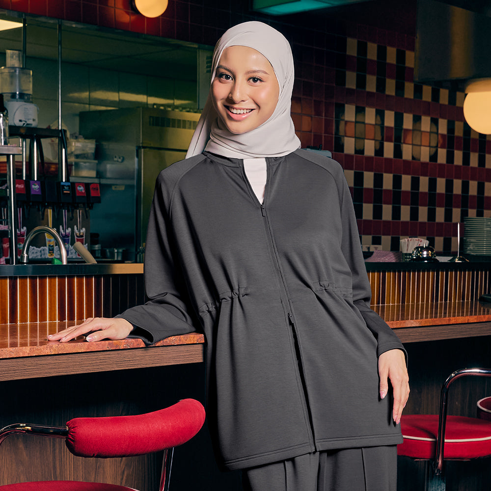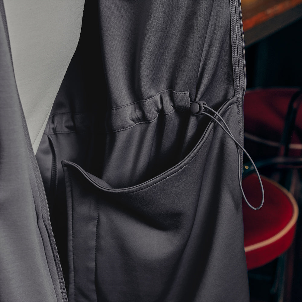 Meet the Adjustable Sweatshirt — a sleek, functional essential made from our bestselling Traveleisure material. The high-neck collar and raglan sleeves create a clean, flattering look, while the two-way front zipper and adjustable drawstring waist let you style it your way. Complete with a hi-low hem, dual front zip pockets, and an embroidered sleeve logo, this sweatshirt combines comfort, practicality, and modern versatility. Ideal for travel, daily wear, and everything in between.