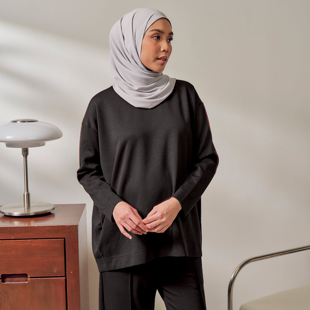 A loose-fit drop shoulder silhouette. The high-low design gives extra coverage for the back area. Go for this baggy style for a more laid-back look!