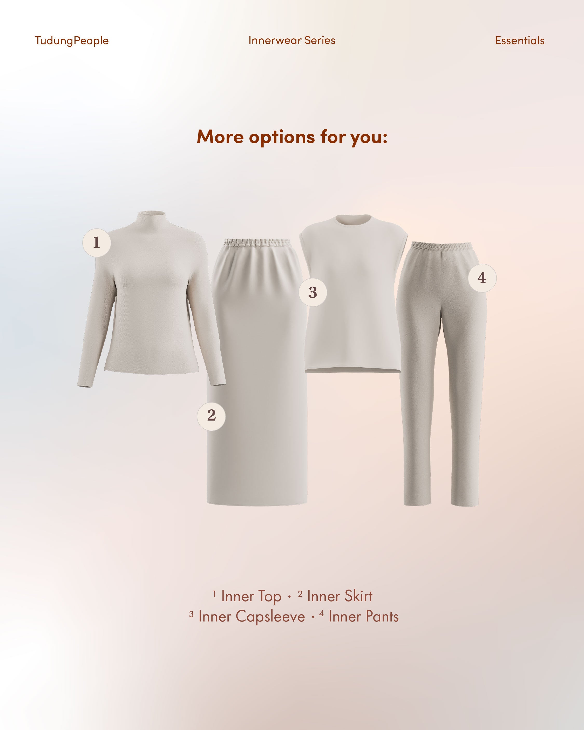 The TudungPeople Essential features innerwear that are curated and made with comfort and modesty in mind! With a range of top and bottom pieces made to be worn daily. Each inner is perfected with light and breathable material.