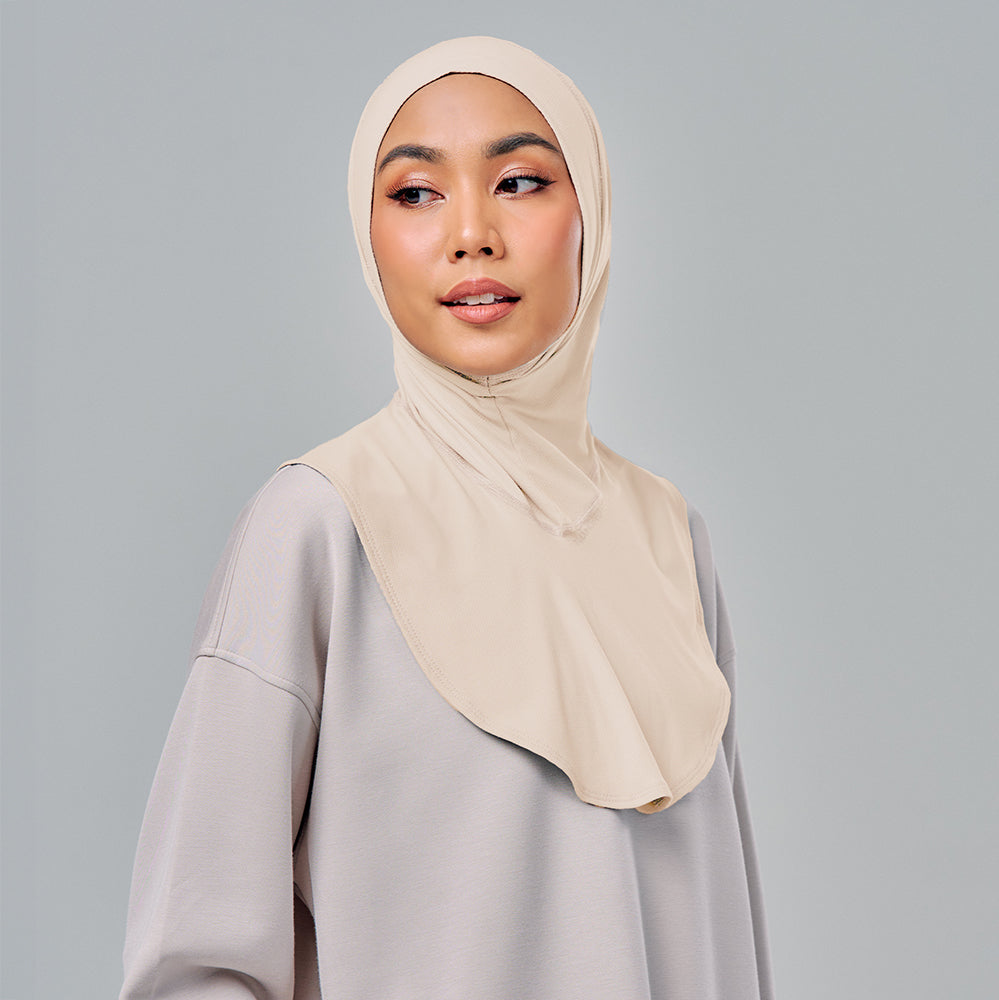 A hijab made for the active. The Sport Pro comes with an attached inner necktie underneath. The Pro is made similar to Najwa Sport Hijab, but shorter in length!